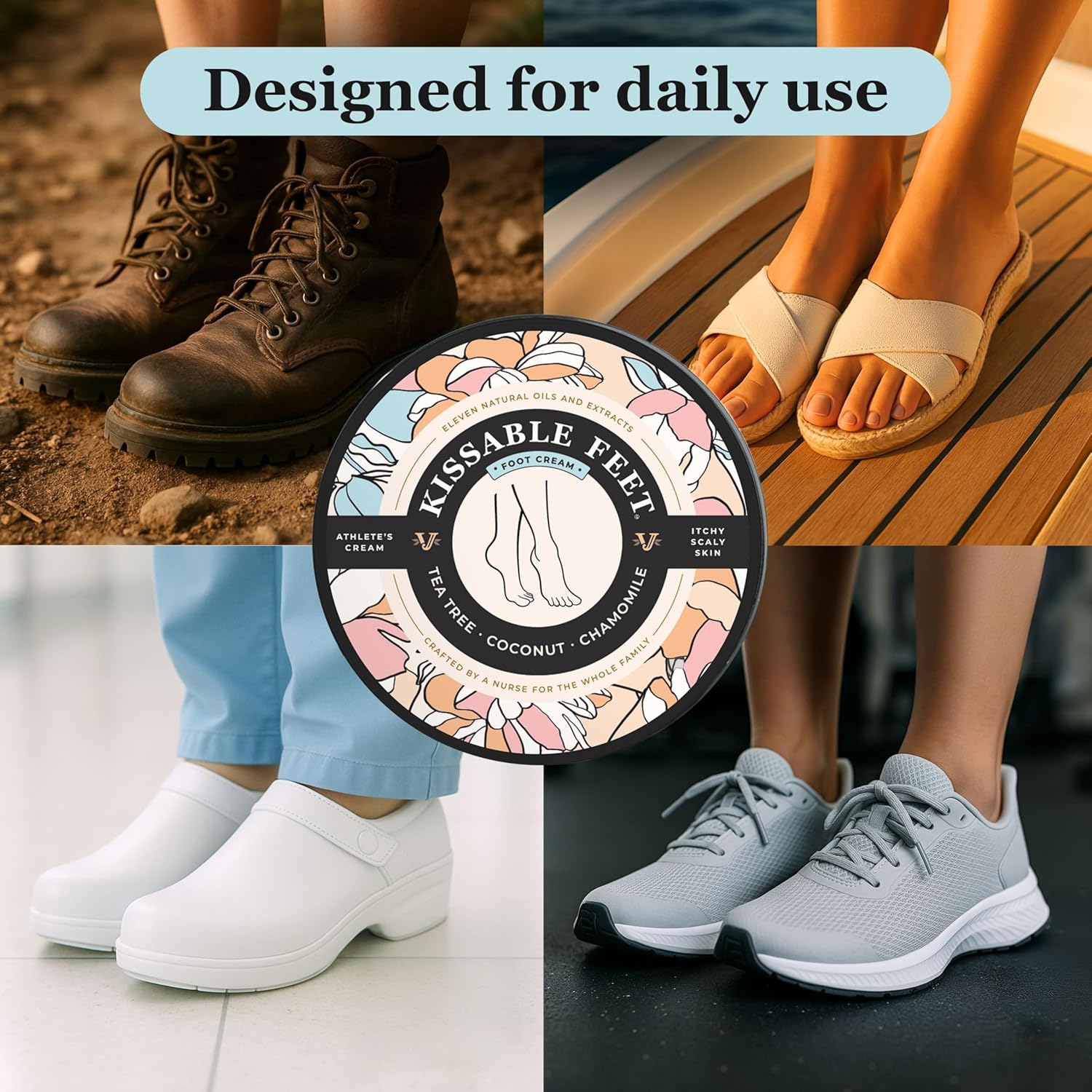 Kissable Feet, Athletes Foot Cream – Cream for Itchy, Dry Skin – Tea Tree, Coconut & Chamomile – Crafted for the Whole Family, No Sting – 3.5 oz