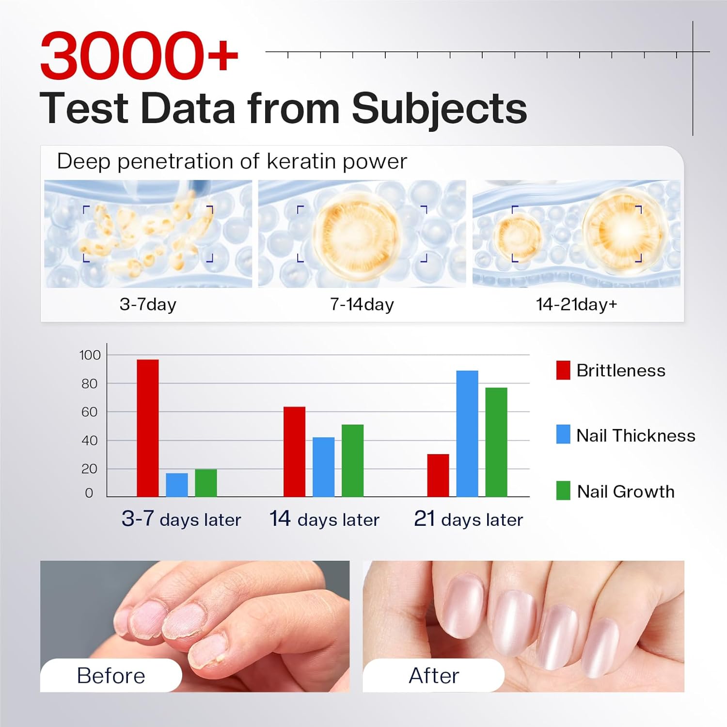 - Nail Hardener: Tested 10w+ samples, effectively proved to nail strengthen for damaged nails, nail repair, add “calcium” to improve work, housework, remove nail art caused by thin, brittle, cracked nails, reduce discoloration, make nails smooth, and back to nails health.