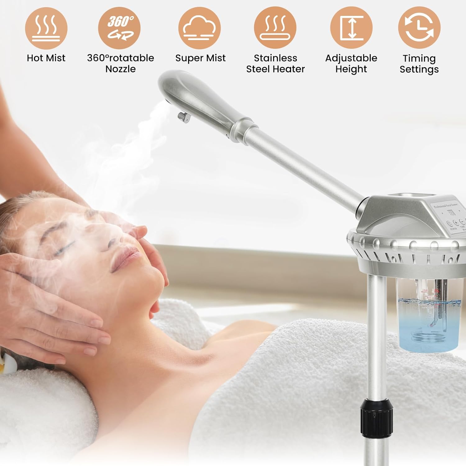 Professional Facial Steamer for Estheticians Face Steamr on Wheels with Hot Mist & Timer Function Suitable for Home Use or Beauty Spa Deep Cleansing and Hydration