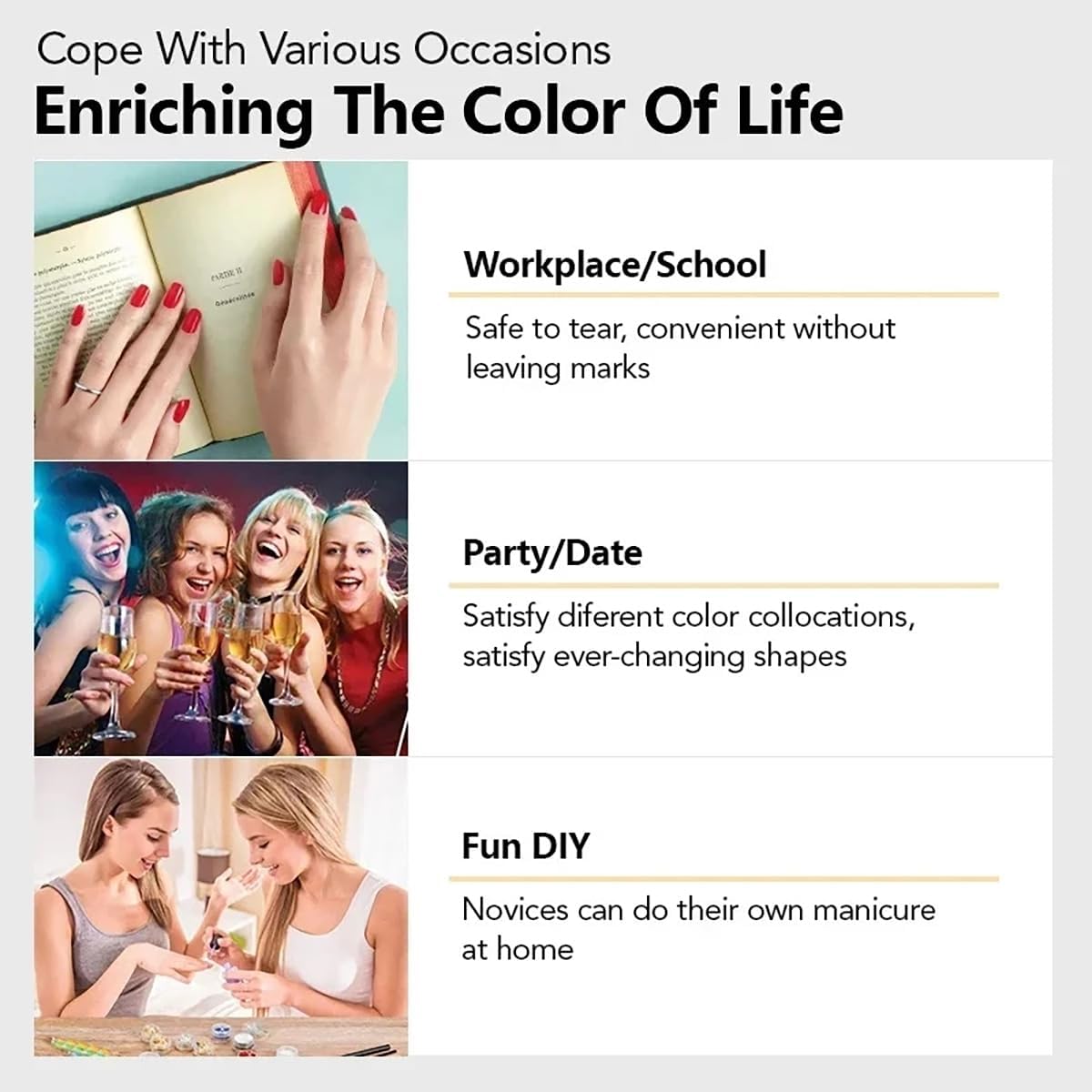 - Wide Applications: These solid color nail polish stickers are not only suitable for experienced nail art lovers, but also for those nail art beginners, convenient operations, making manicure process much easier, can be applied for many occasions, such as dating, birthday parties, shopping and so on