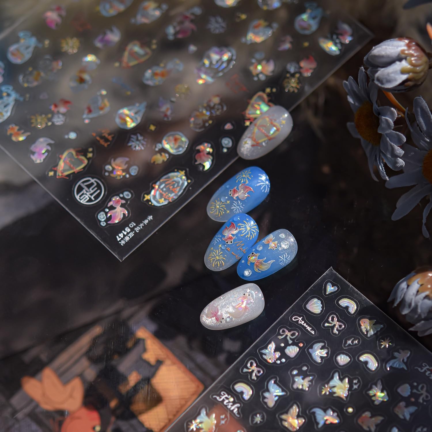 - Summer Nail Art Decals: 1 sheet of 5D embossing goldfish theme nail stickers give people an intuitive and advanced exquisite feeling. Shinny koi fish design 5D nail art decals are perfect for decorations for your spring summer nails.