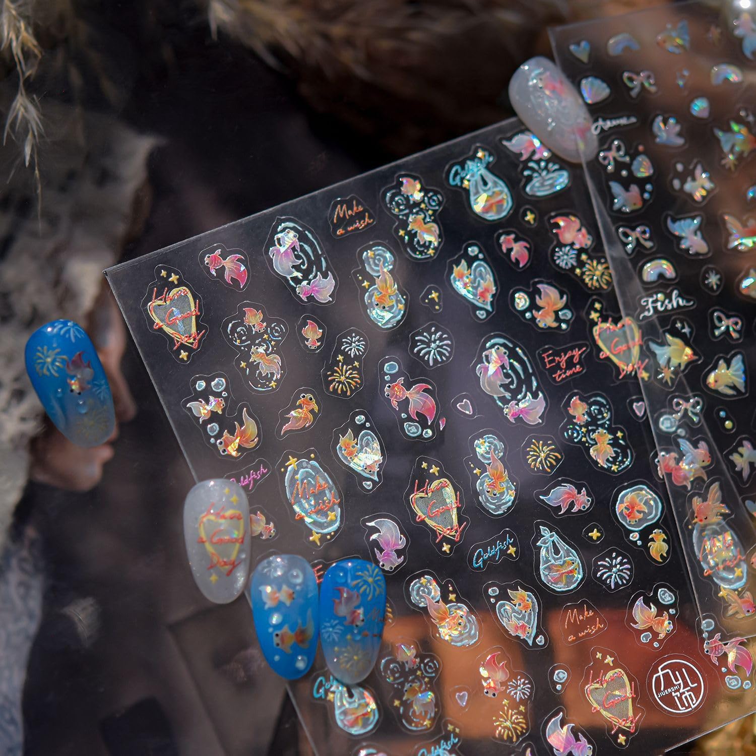 - Summer Nail Art Decals: 1 sheet of 5D embossing goldfish theme nail stickers give people an intuitive and advanced exquisite feeling. Shinny koi fish design 5D nail art decals are perfect for decorations for your spring summer nails.