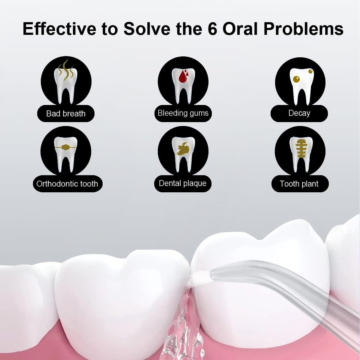 - 【Your Perfect Flossing Choice】 This water flosser comes with a 300 ml water tank and 2000 mAh battery that is easily recharged with the included USB cable, an IPX7 rated waterproof design that ensures no leaks, and an ergonomic handle that makes it a breeze to use. It has five cleaning modes for a complete oral cleaning experience. It even includes specialized tips for orthodontic care. It also includes deep cleaning and soothing massage modes to revitalize your gums and smile.
