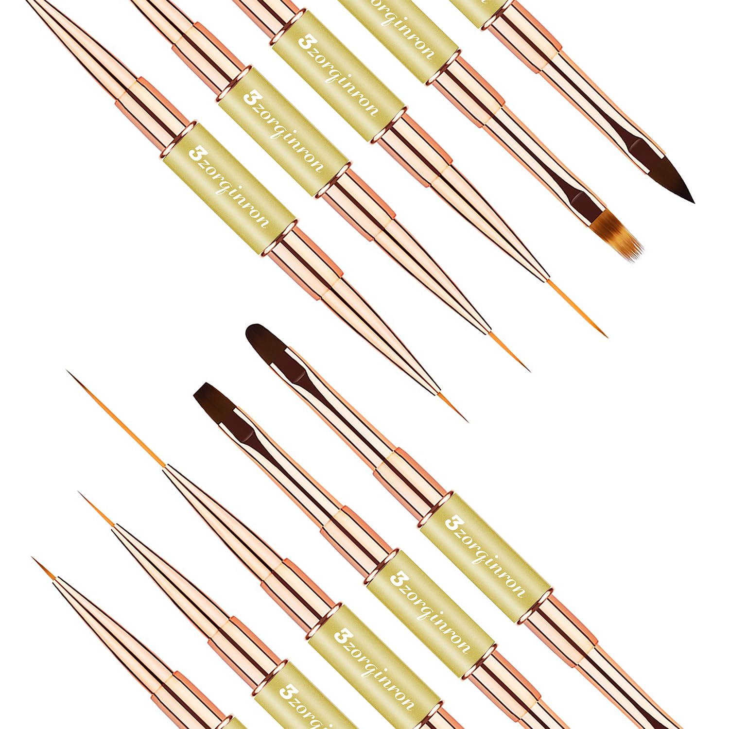 - Versatile Design – Our brushes feature double-heads with 10 different brush heads to choose from, including liner and detail brushes, flat and ombre brushes, a Filbert brush, and a 3D brush, giving you the freedom to create any design you like. Whether you're creating delicate floral patterns or bold abstract designs, these brushes will deliver outstanding results.