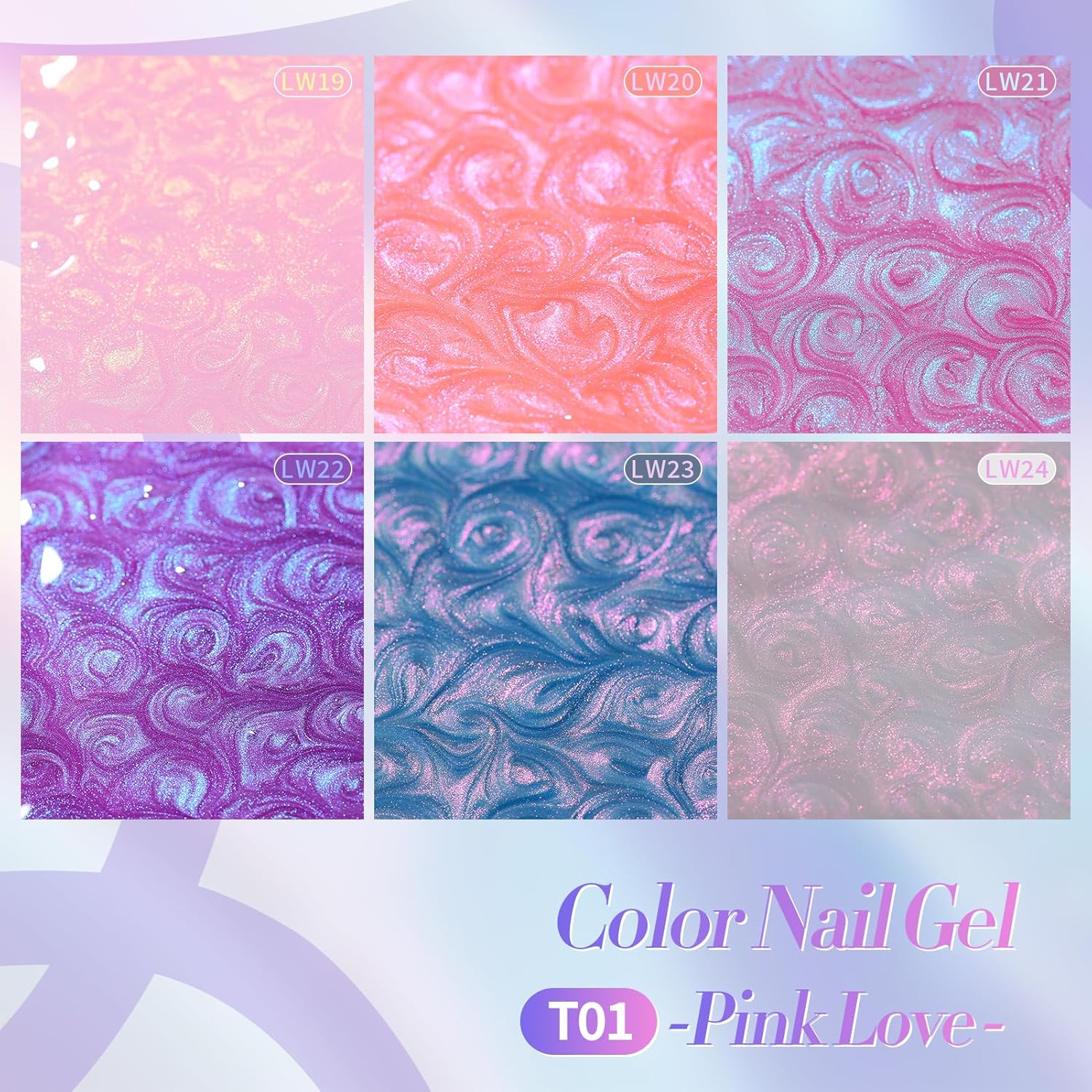 Born Pretty Pearl Gel Nail Polish, 6 Colors Pearl Pink White Purple Shimmer Mermaid Gel Polish Nail Drawing Glitter Polish Soak Off Led Swirl Shell Thread Effect DIY Manicure Gift for Women