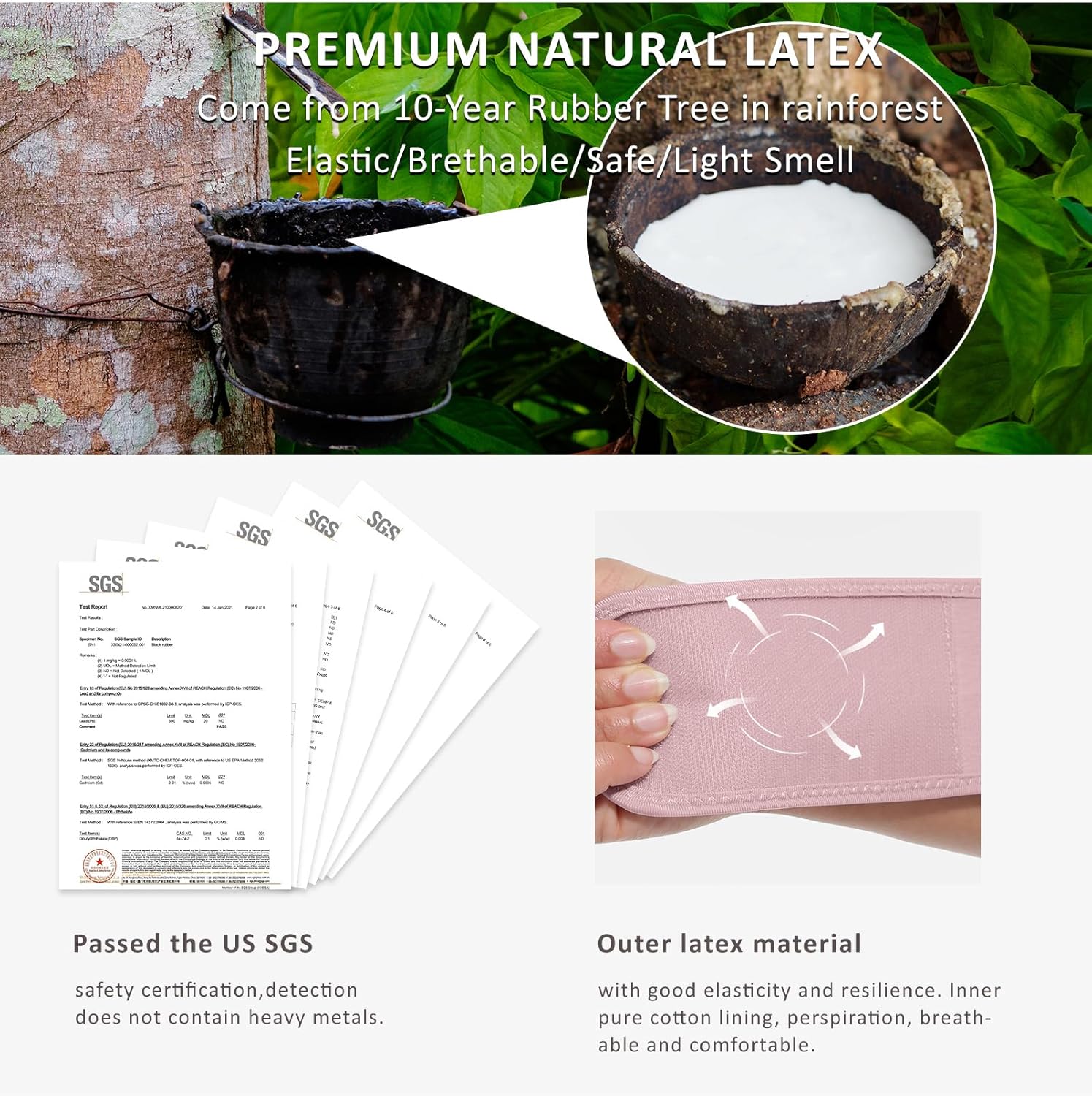 • Fabric type : Inner layer 96% Cotton+4% Spandex; Out layer natural latex