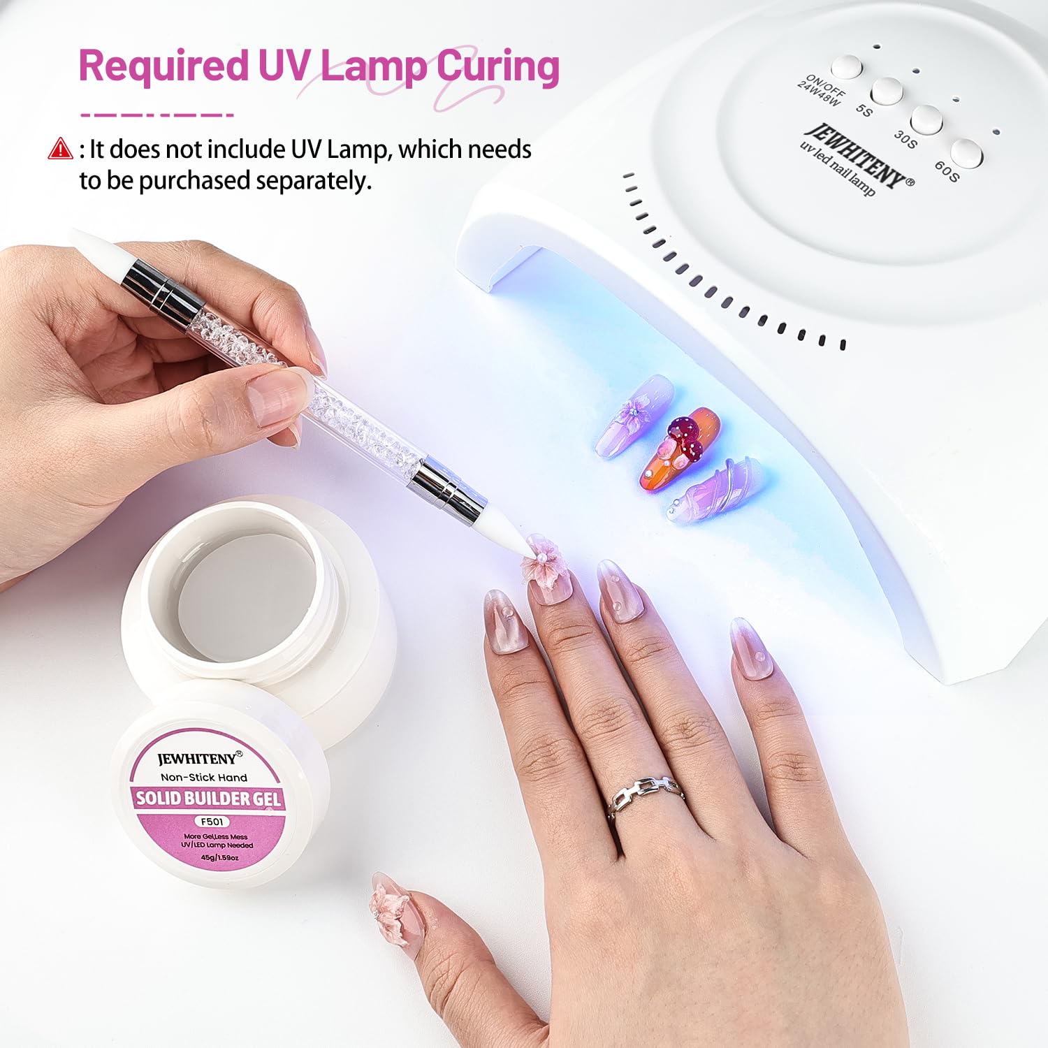JEWHITENY 45g Large Capacity Clear Solid Builder Gel: Non-sticky 3D Sculpting Gel For Nail Extension, Nails Carving & 3D Molding Nail Art