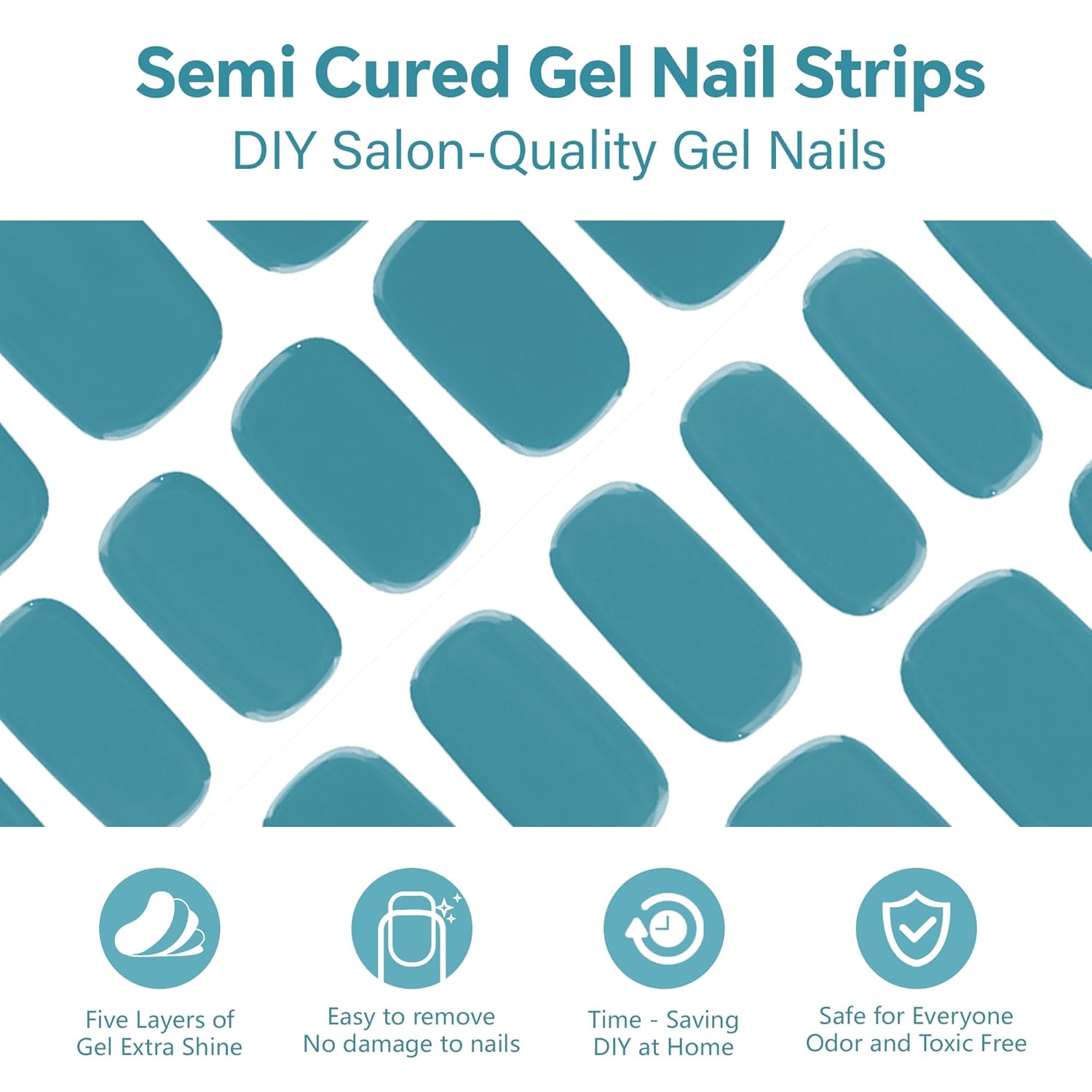 Semi Cured Gel Nail Strips-Salon Quality Semi-Cured Gel Press On Nails Stickers Works with Any UV/LED Lamps Quick DIY Nail Art Manicure Kits for Women at Home(Washing Jean)