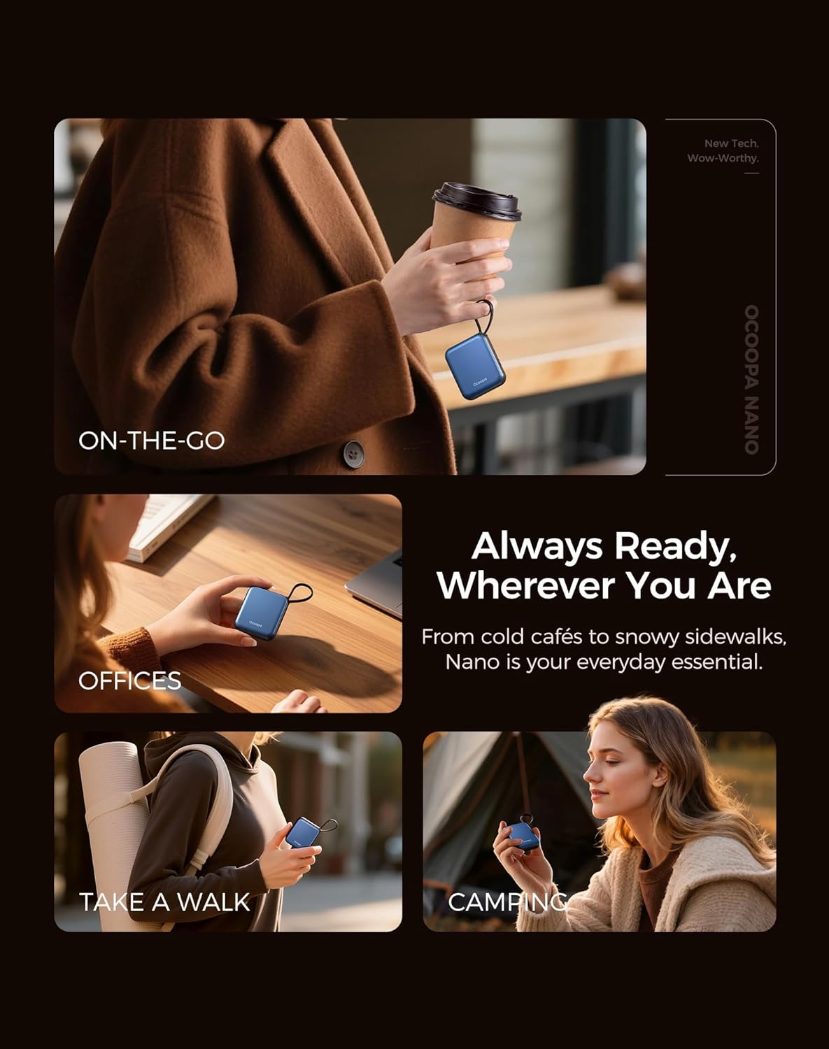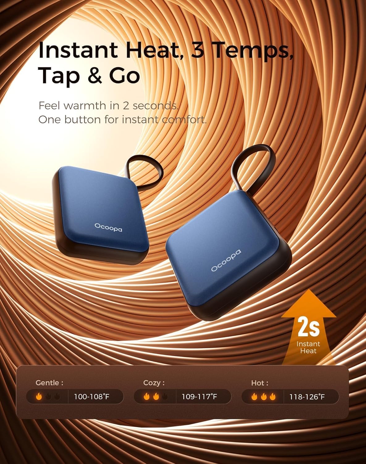 - 3.5-7 Hours All-Day Long-Lasting Heat — Keeps hands cozy from your morning walk to evening dinner without mid-day charging.
