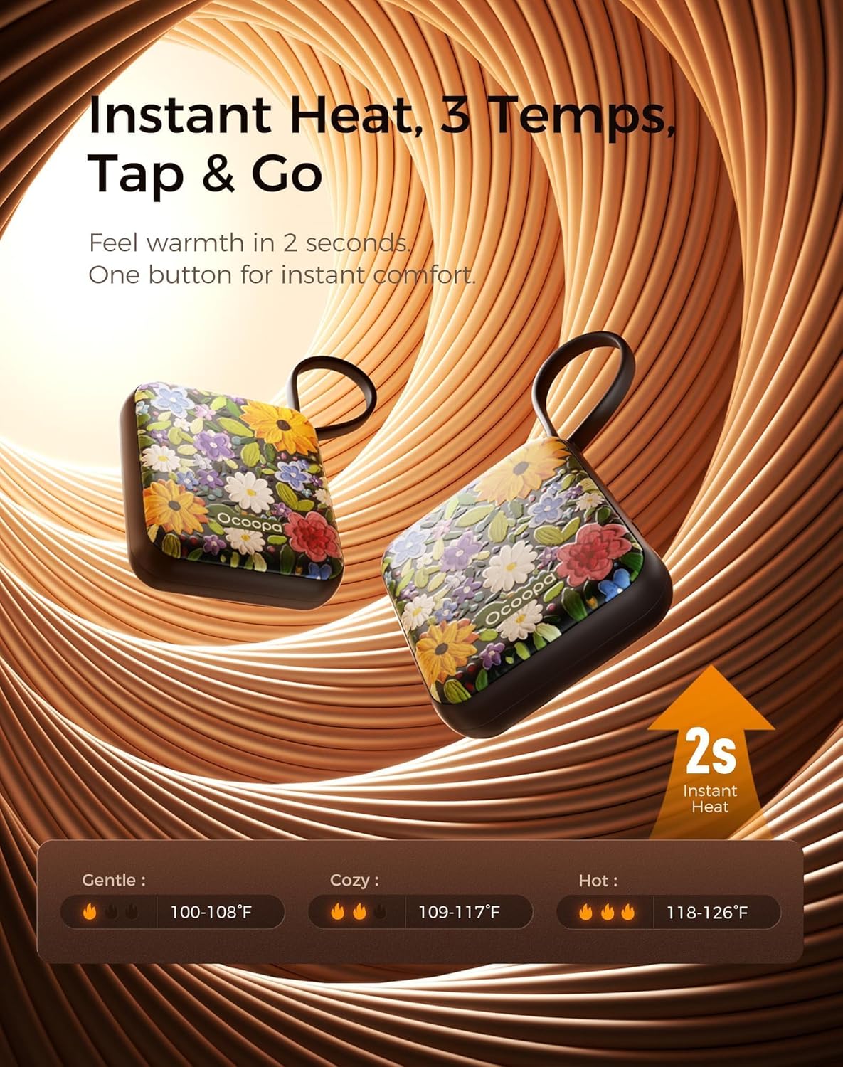 Ocoopa Hand Warmers Rechargeable UT5 Nano – Slim Electric Pocket Heater, Smart Temp Control, 14Hrs Battery, UL Safety, Artists in Bloom Design, Practical Gifts for Women, Christmas, Outdoor, Office