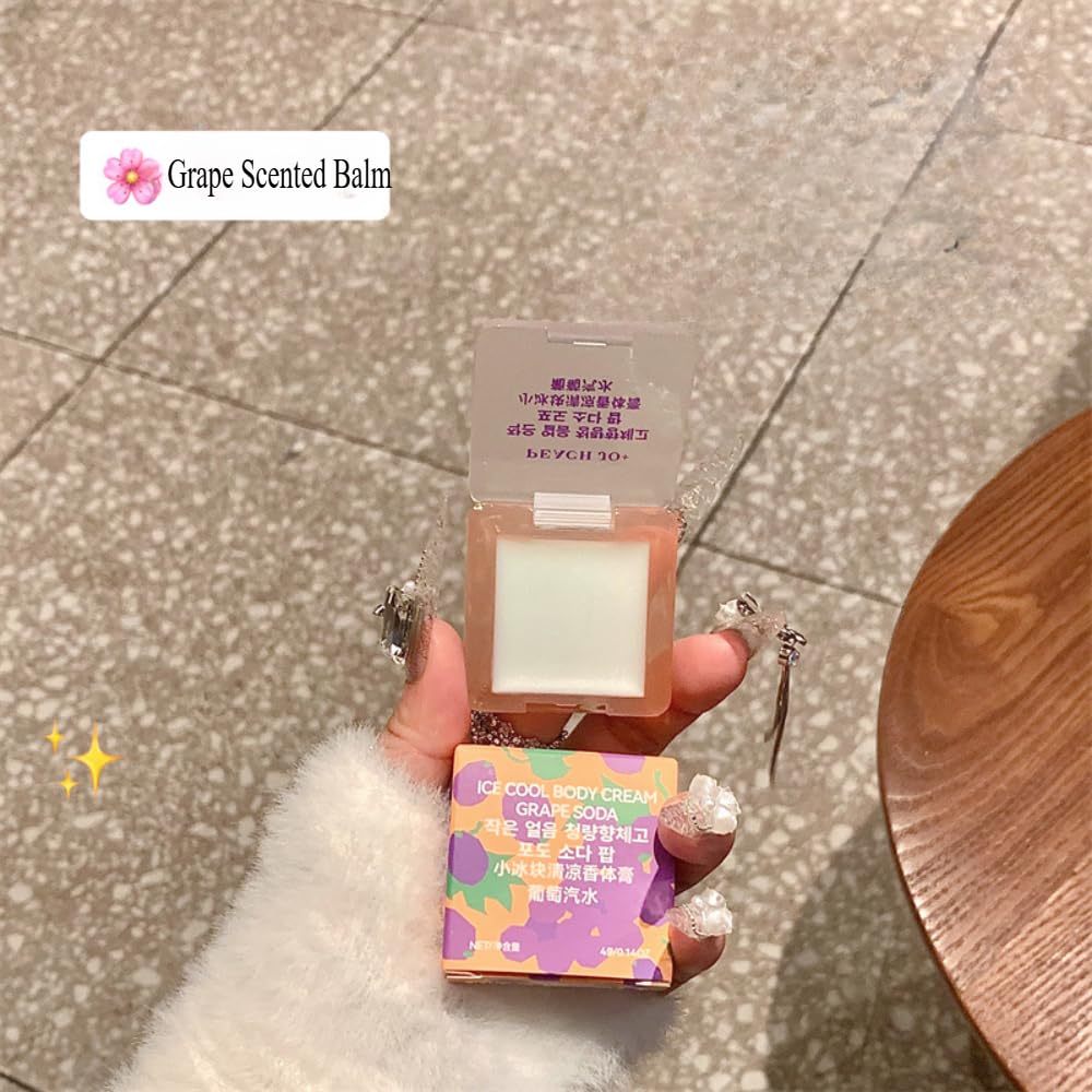 Mini Ice Cube Cooling Solid Perfume Balm - Refreshing Fruity Scent with Shimmer Highlighter, Long-Lasting Fragrance & Odor Neutralizer for Women (Portable Skin Glow) (Sparkling Grape Fizz)