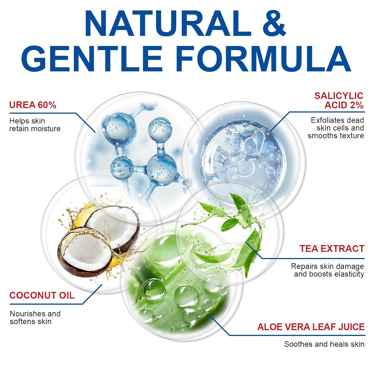- Moisturizing Foot Cream: The urea cream balm contains 60% urea and 2% salicylic acid, which are excellent ingredients for nourishing and moisturizing, soften and repairing the dry and cracked feet and hands