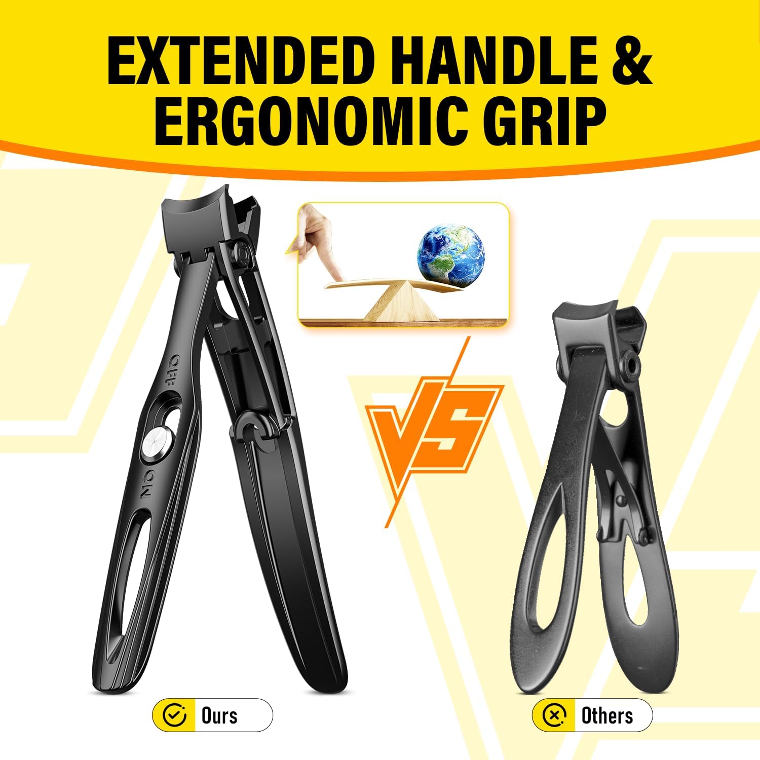 - [Extra Long Handle Nail Clippers] Designed with an extended handle, these long handle toenail clippers provide extra leverage for effortless cutting. Ideal for seniors, people with arthritis, or limited hand strength. The handle is longer than most wide jaw toenail clippers on the market, making them the perfect long handle nail clippers for thick toenails.