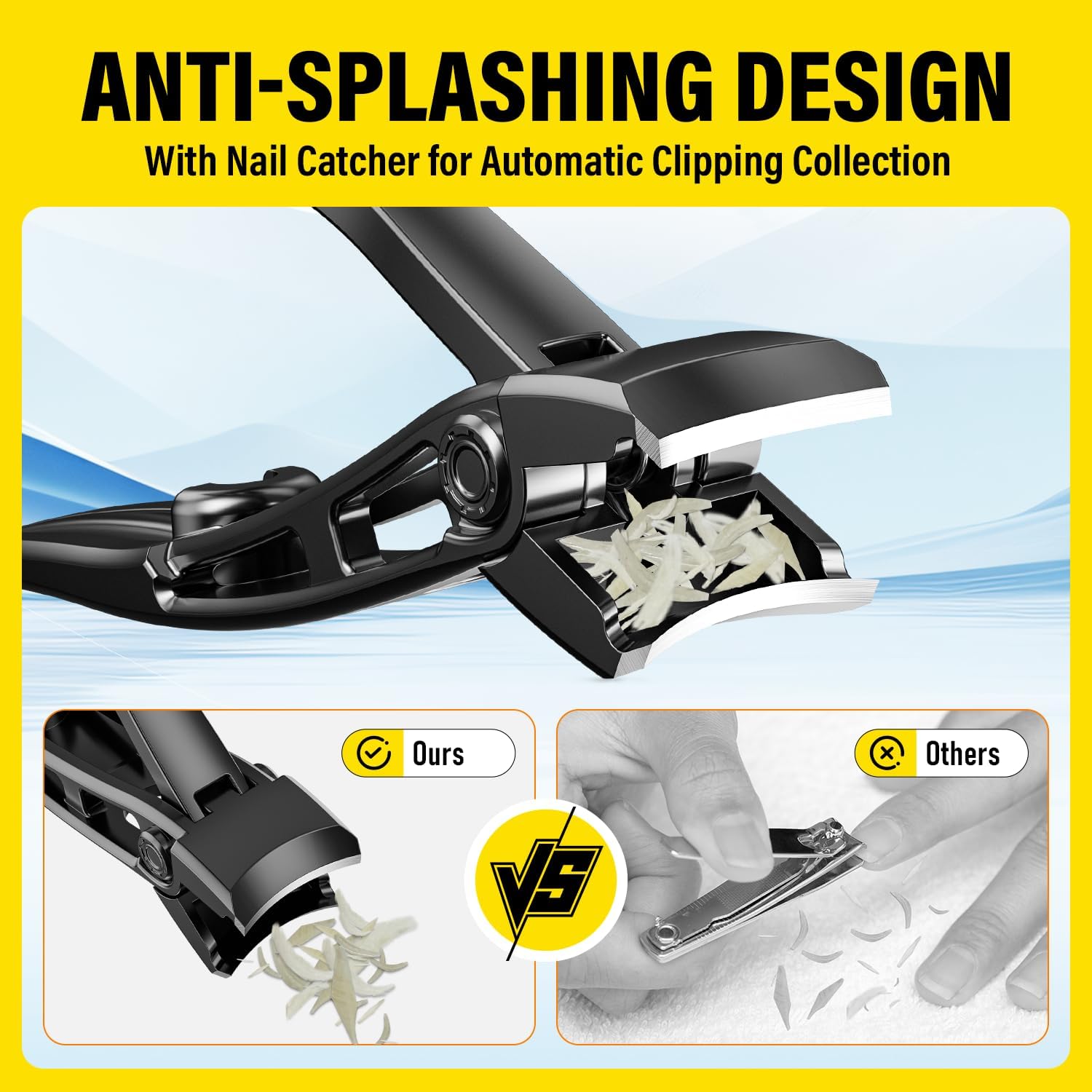 - [Anti-Splash & Mess-Free Cutting] Innovative anti-splash toenail cutter with a built-in nail catcher that prevents clippings from scattering. Keep your space clean while trimming fingernails or toenails.
