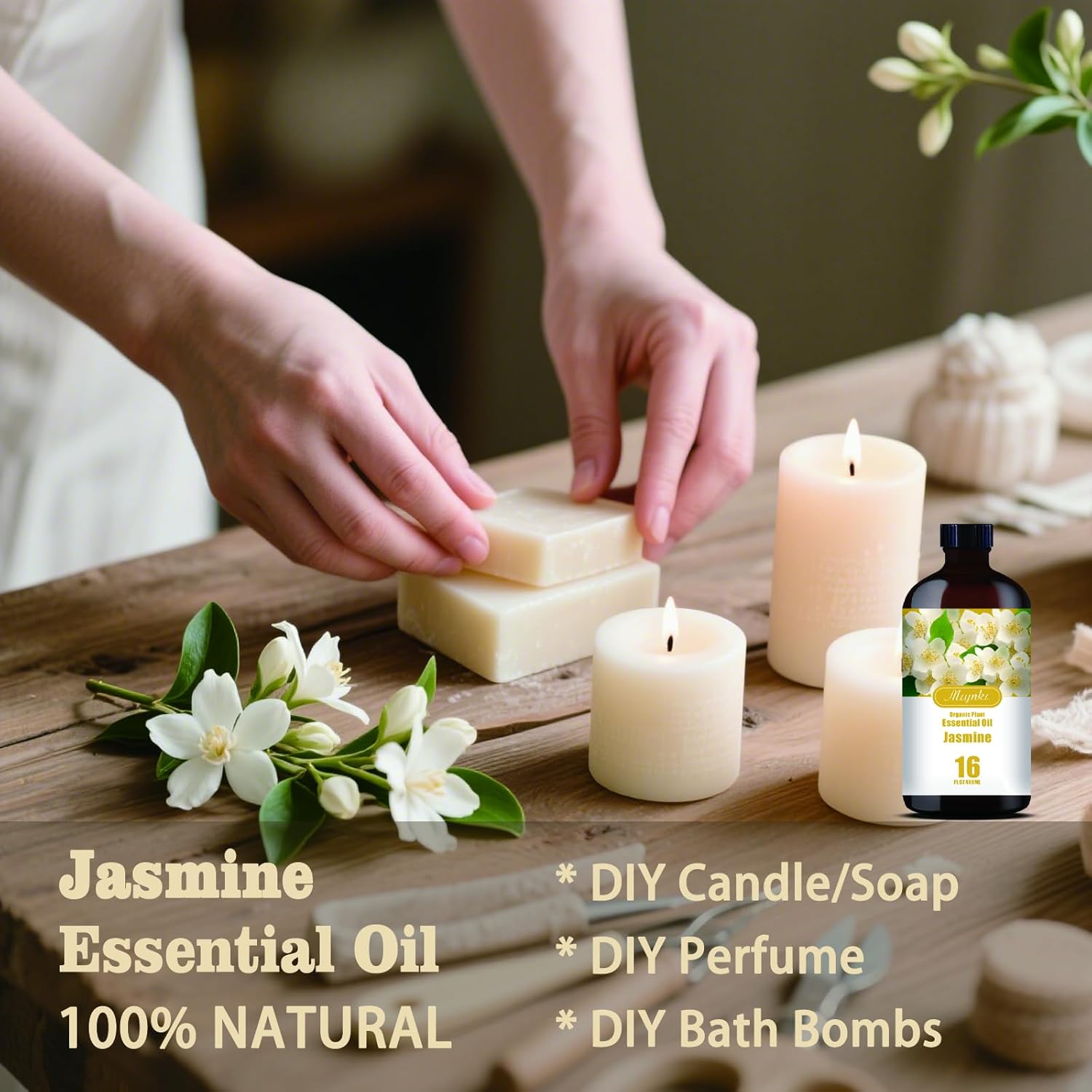 - * You can use multi-purpose essential oils - Jasmine essential oil is suitable for aromatherapy machines and has many other uses. Use it for aromatherapy machines, humidifiers, home fragrance, spa, cleaning, massage, yoga, DIY candles, DIY soaps, perfume, car fragrance, bath balls, etc.
