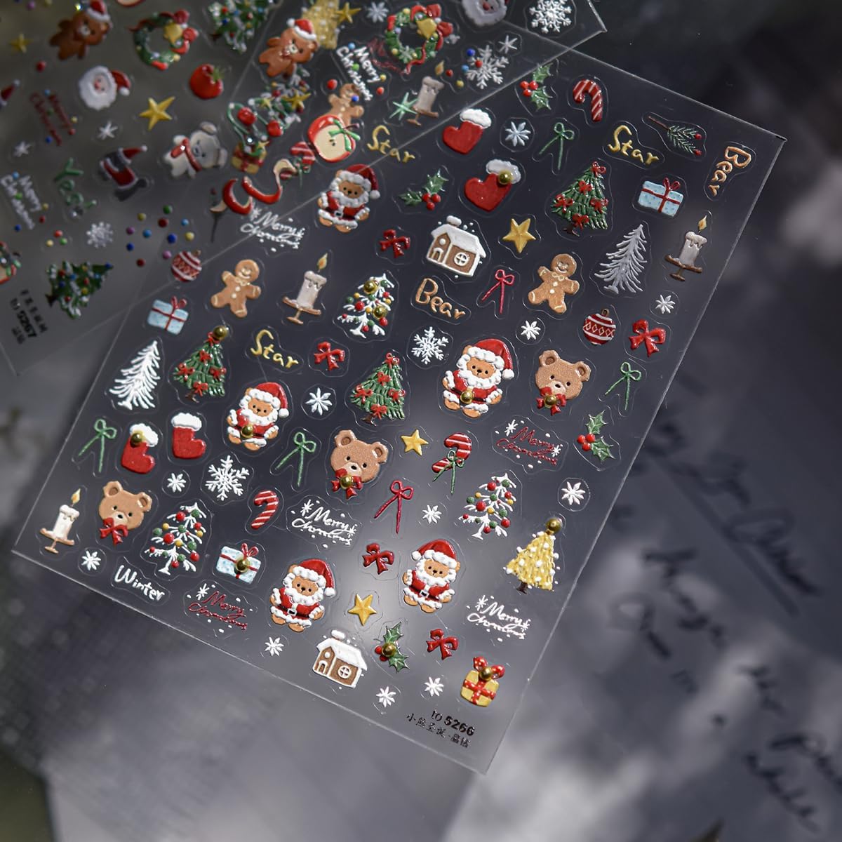 - Easy to Use: 5D Christmas design nail stickers for nail art are self-adhesive, just remove sticker then stick this 5D nail decals on your nail. Apply top coat gel to seal to make the stickers last longer.