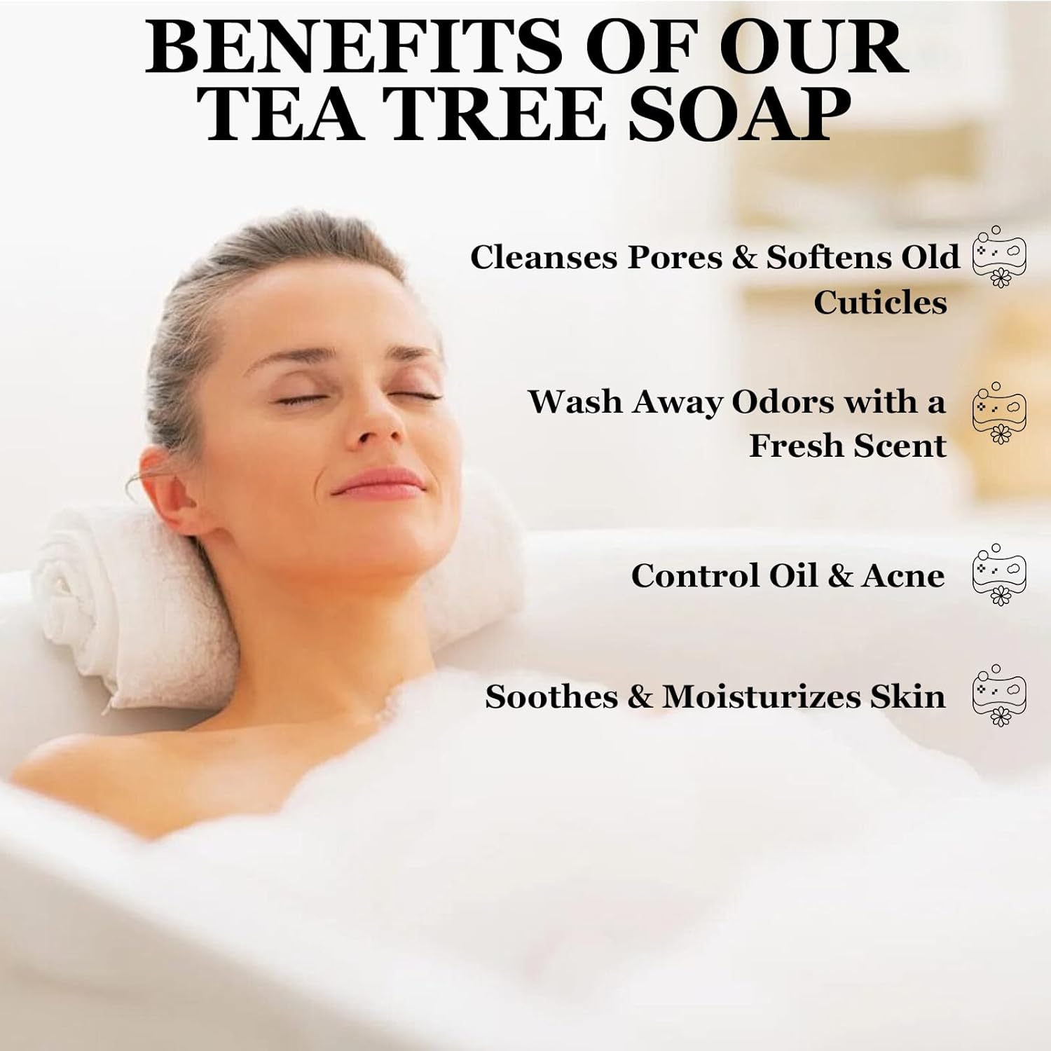 - 【Pure Tea Tree Oil for Healthy Skin】Our tea tree organic soap harnesses the natural power of pure tea tree oil to addresses foot discomfort and skin irritations, promoting clearer, healthier skin