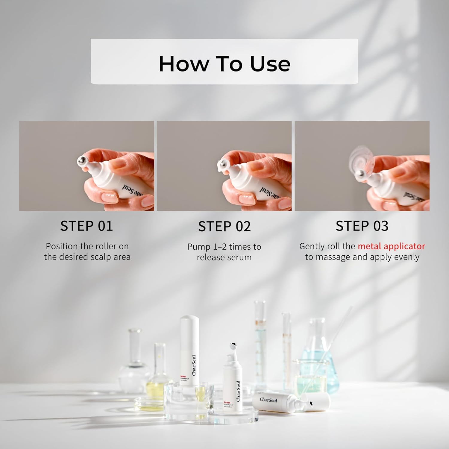 - INNOVATIVE METAL ROLL-ON APPLICATOR – Specially designed micro-rollers gently stimulate the scalp surface while delivering serum directly to the roots. Enhances cooling sensation and absorption for maximum scalp comfort and visible results.
