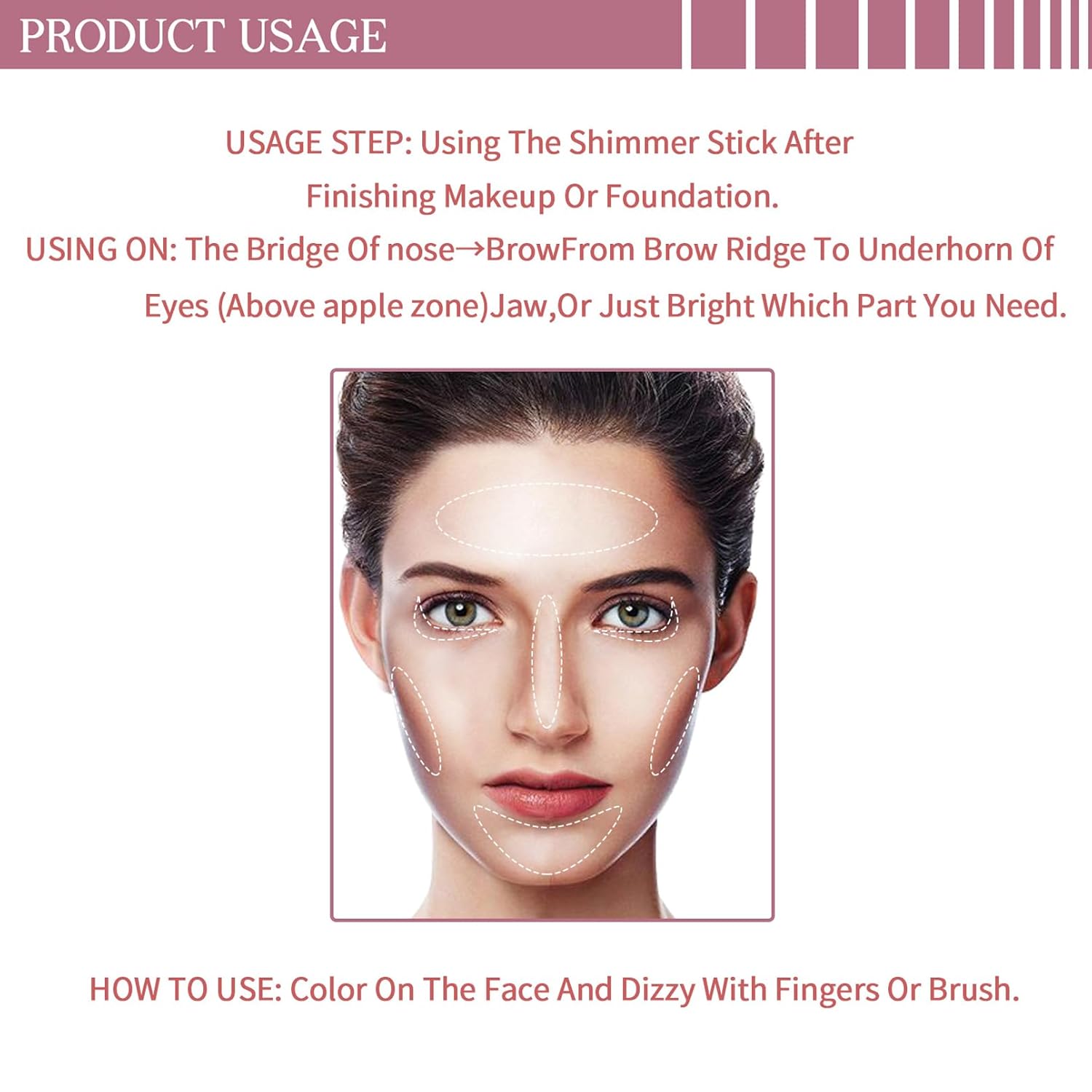 - Multi-Use Highlighter Makeup Stick: This is not only a glitter highlighter makeup stick for face contour improvement, but also can be used as blush and eye highlight to make your skin look moist, light and elegant. With just a highlighter stick, you can easily get your entire face and body makeup done.