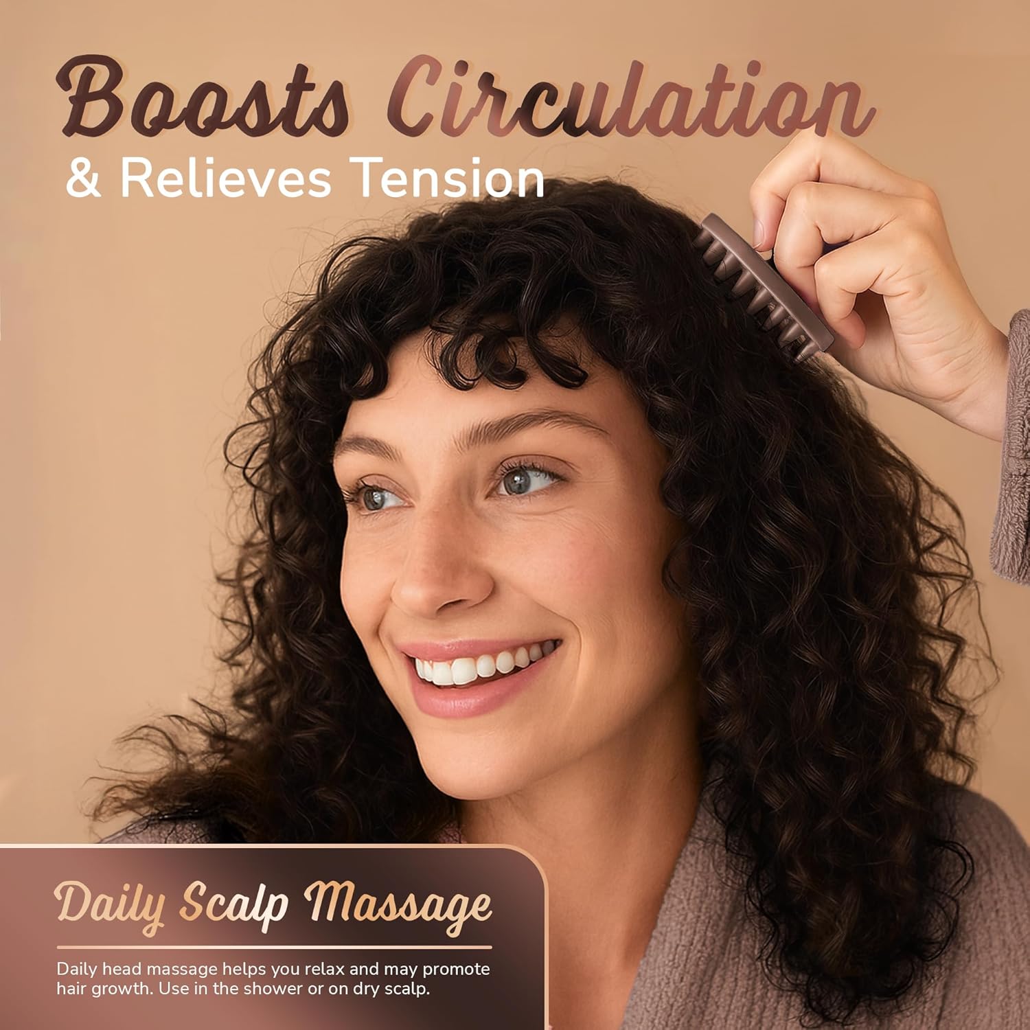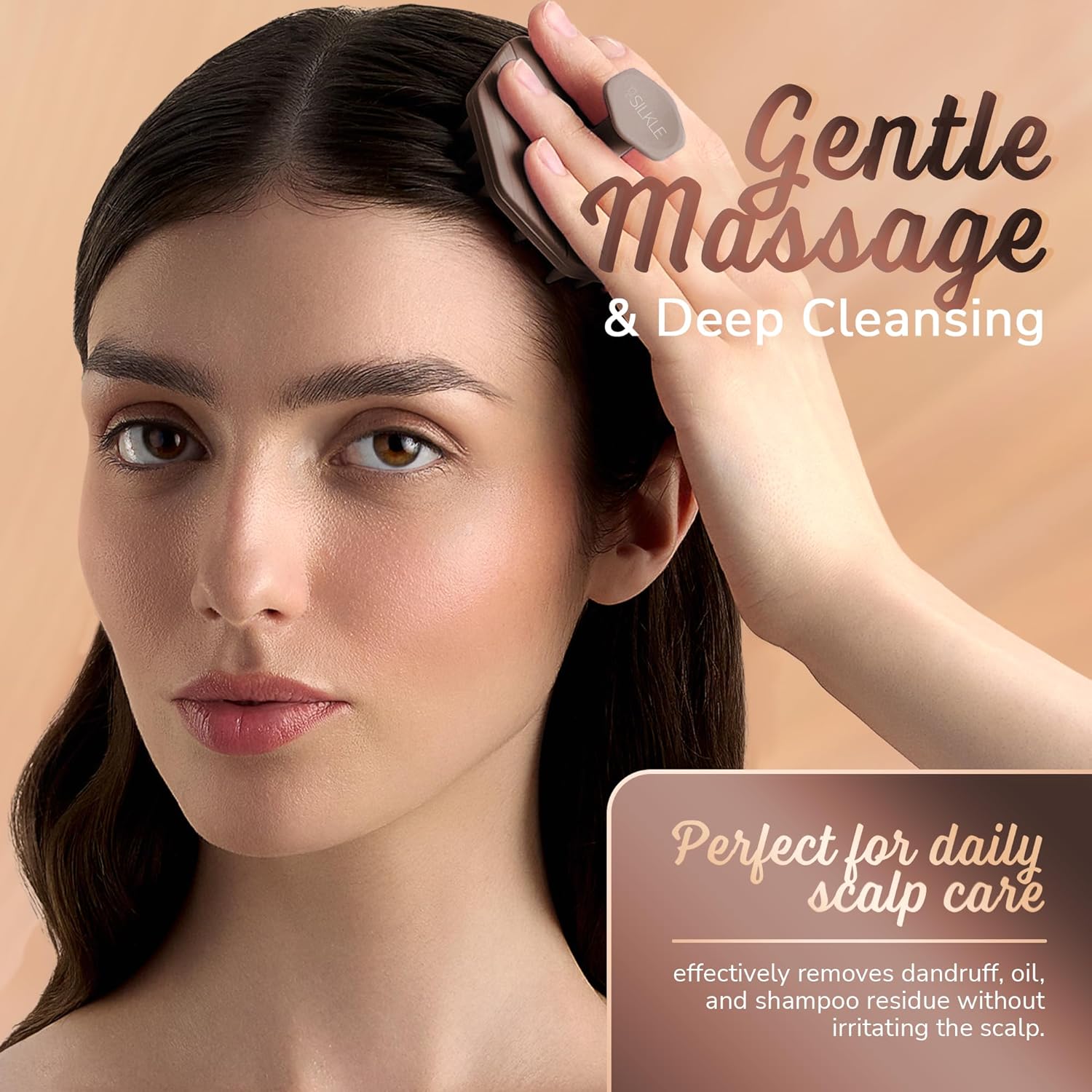 Silicone Scalp Scrubber - Massage Shampoo Brush, Soft Bristles for Hair Growth & Dandruff Removal - Ergonomic Design, Wet & Dry Use, Deep Cleansing Scalp Exfoliator for All Hair Types - Brown