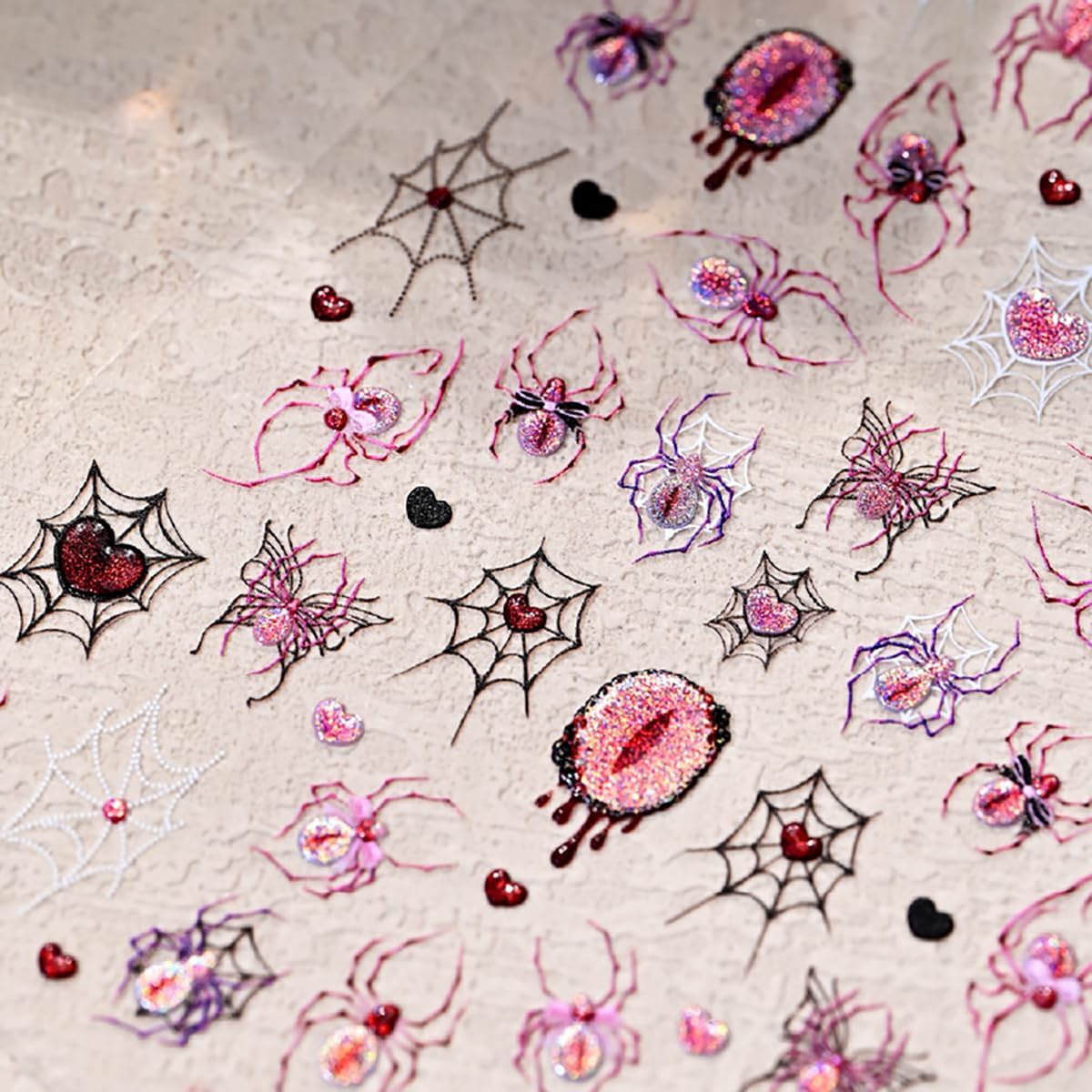 2 Sheets Halloween Nail Art Stickers Decals 5D Embossed Spider Web Nail Decals Glitter Spider Eyes Nail Design Stickers Gothic Halloween Nail Art Supplies for Women DIY Manicure Decoration Accessories