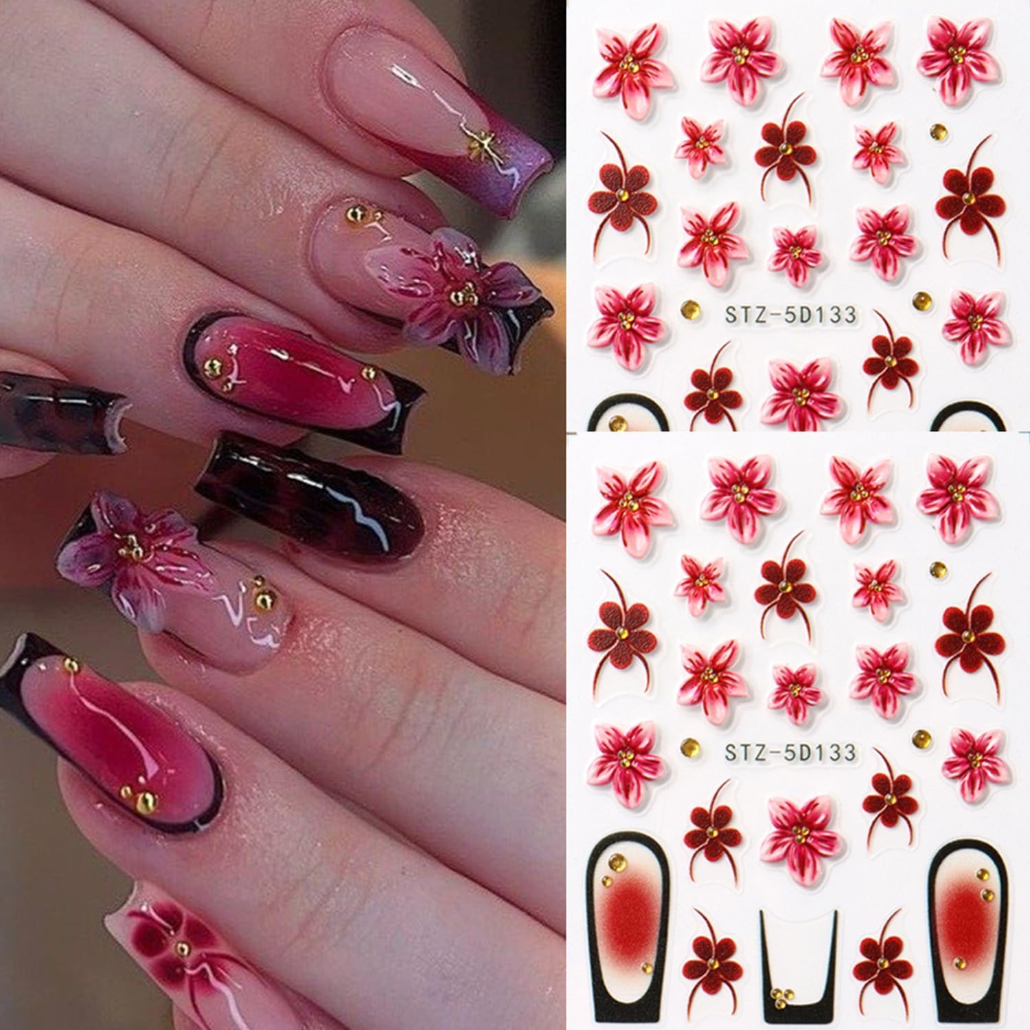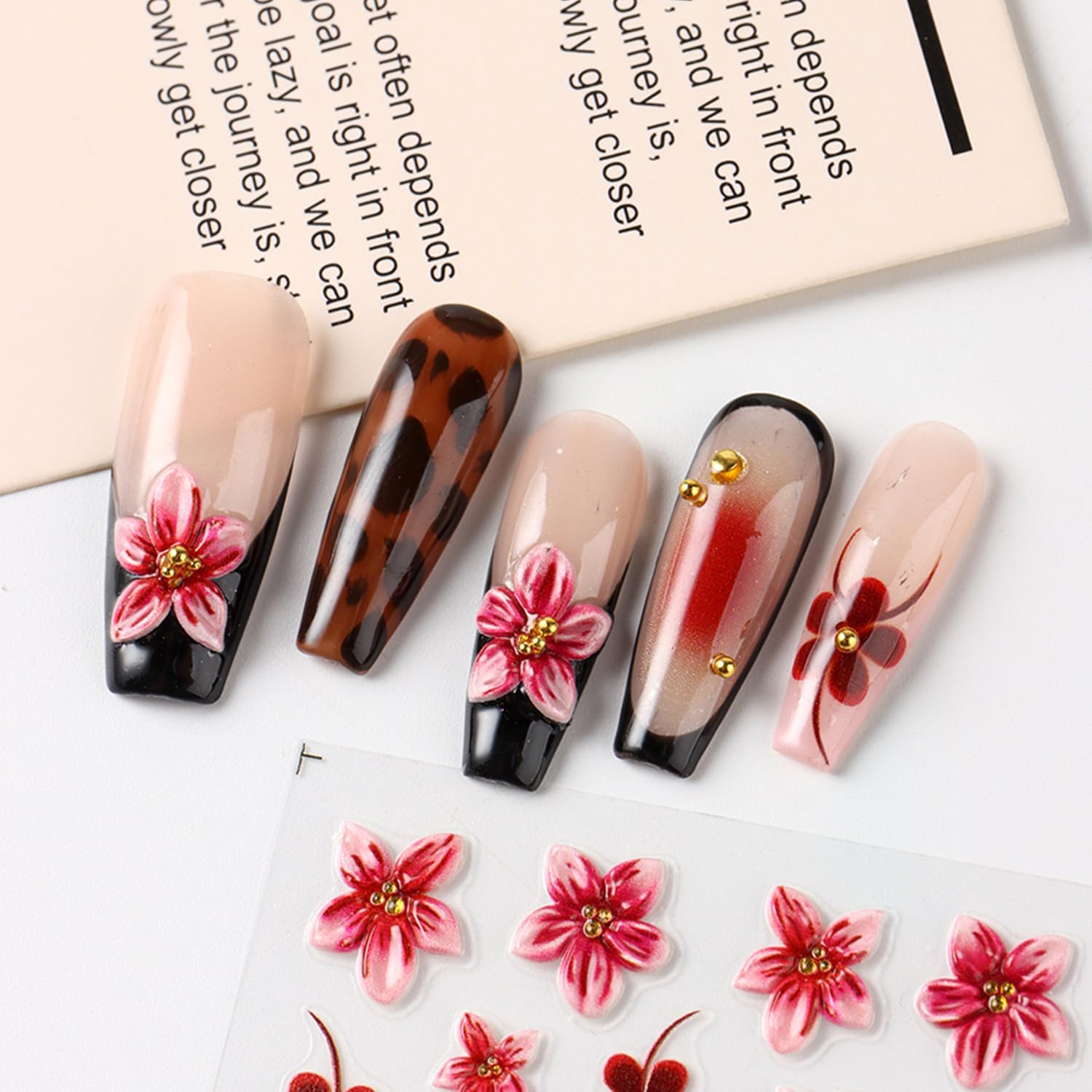 - Easy to Use: Use tweezers to remove the design from the 5D flower nail sticker and stick on your nail or fake nails. You can also cover the pattern with a coating to make the stickers last longer