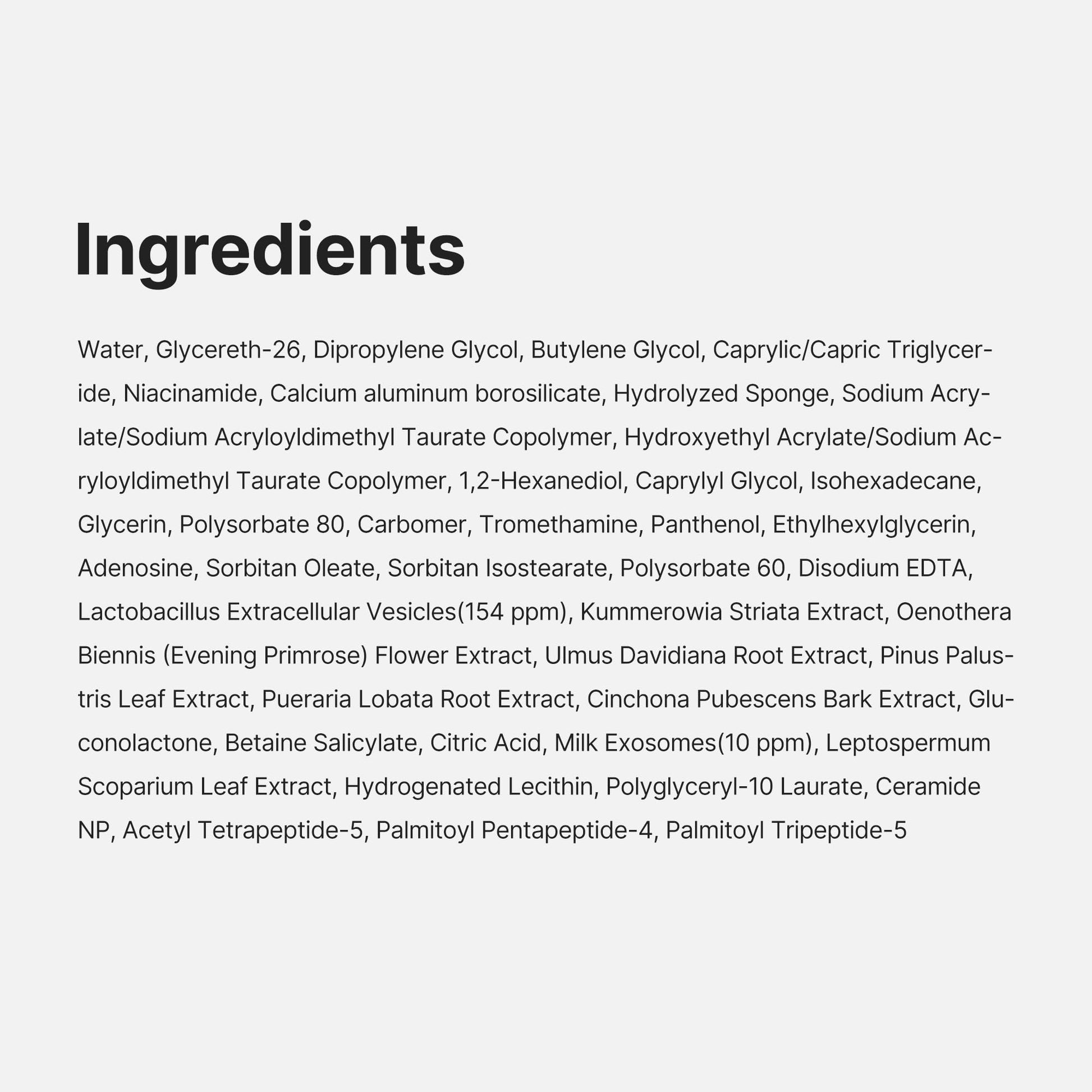 - Exosome-Coated Technology - Harness the next-generation skincare with Exosome-coated Spicule and Exosome, penetrating deep into the skin to deliver active ingredients effectively. Our advanced formula is designed to address a range of skin concerns, from pore care to enhancing skin vitality and energy.